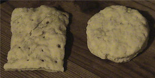 [Hard-tack biscuit, in Army (L) and Navy (R) styles]