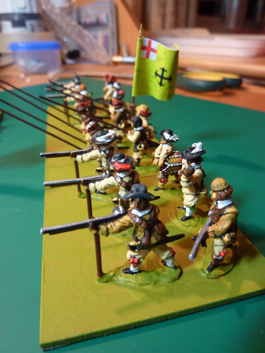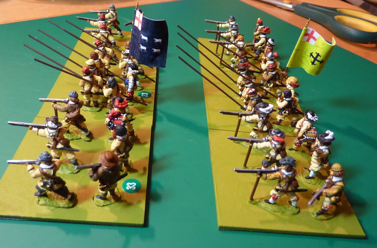 Three units of Lowland Covenanters, to help the Parliamentarian cause. These are the regiments of the Earl of Loudon (Glasgow), Colonel James Rae (Edinburgh) and Viscount Maitland (Midlothian), looking suitably belligerent. Shades of Sauchiehall Street on a Saturday night. They will, of course, change their identity as appropriate to fit the scenario.