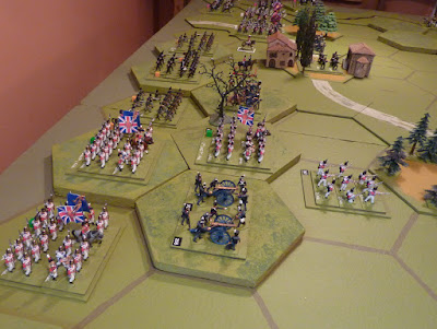 So - no story line here - no excuse for the self-indulgent pictures. Ian mentioned that he rarely saw my Brits these days, so there are some here. This set up (on the standard size, 13 x 9 hex C&C table) involves 2 divisions of French, attacking one-division-plus-an-extra-brigade of Brits. I think I have 6 French infantry divisions in total, so that gives some idea of the potential scale of a bigger, wider battle. I'll think about it. If you like this sort of thing, you can play spot-the-figure-manufacturer - nothing very exotic, I think.