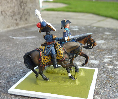 This was going to be, very specifically, General (later Marshal) Suchet, but I had second thoughts. The next in the painting queue is the Duke of Damnation, Soult, and he has a very distinctive ADC, who can be spotted from the far side of the valley - "that's Soult," they will say. Now Suchet also had a recognisable ADC, with baggy trousers - plum coloured, as I recall - and this ADC's greatest claim to fame, of course, is that he appears in one of the Osprey books...
