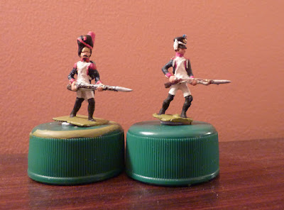 My sincere thanks, again, to Stryker and Wellington Man for their generous donations of vintage figures, and to Clive and to Chuck Gibke for consultancy services. All much appreciated. I am still working on obtaining supplies of suitable castings, but at least I now know what I'm looking for. Sometime soon I hope to paint up a unit, though the extra French division which arrived recently probably takes precedence, if only to get it out of the way. No - let's not say that - it may well be that after some heavy sessions retouching the French I'll really fancy doing some Bavarians for a break!