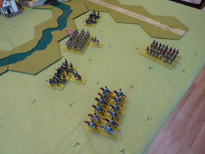 Yesterday was a fighting day - we were re-playing the Battle of Eckau (July 1812), of which I confess I had never heard before. The real battle has two alternative dates, depending on whose calendar you use - it was fought between Prussian and Russian forces at and around the small town of Gross Eckau (modern Iecava, in Latvia) - the Prussians, of course, were temporarily working as part of Marshal MacDonald's X Corps.
