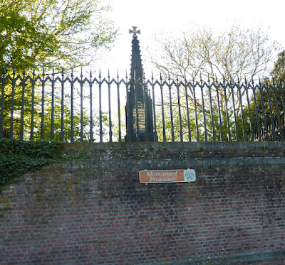 Although it is very close to the church, the Prussian monument took a little finding. It seems that, in the years around 1815, the place where it stands was a bald hill, on the northern edge of the village, from whence the Prussians made their repeated attacks against the church area