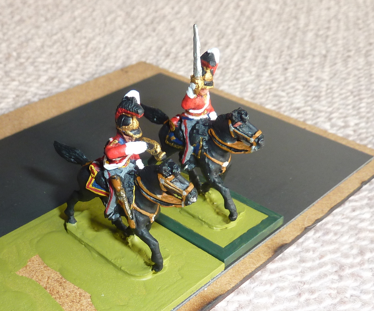 I have now based up the Waterloo Life Guards - still one man absent, but now varnished and based. Very pleased with them.