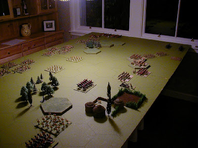 Same boards. A shot of a Romans v Celts battle in Feb 2001 - this picture intrigues me, since it is taken in the old dining room of our cottage, a room which is now the downstairs bathroom. This is as near as I have got to fighting battles in the toilet