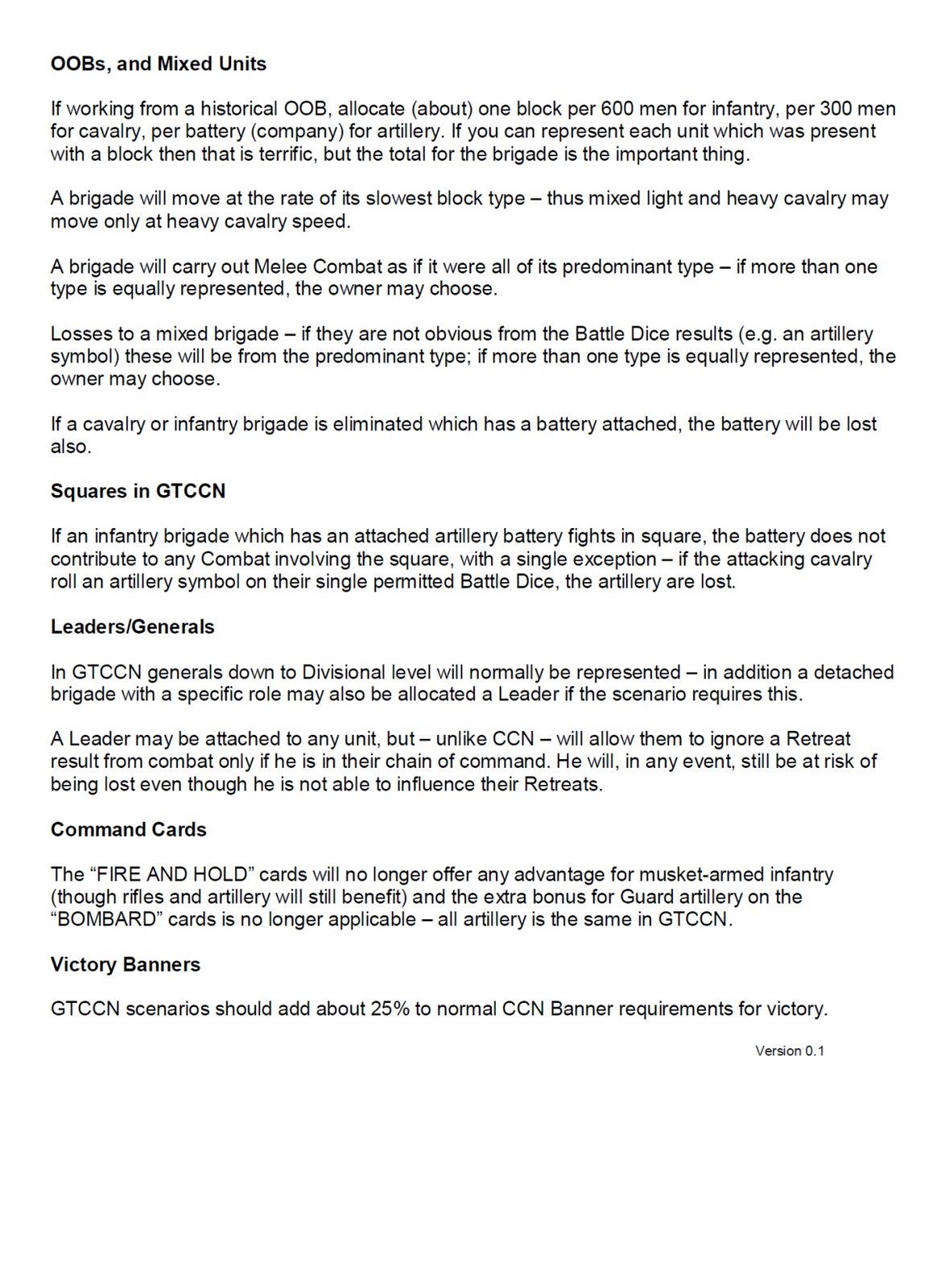 Scenario requirements for victory for GTCCN will need rather inflated numbers of Victory Banners, to allow for the increased numbers of Leaders and the likely numbers of lost divisional batteries. Remember that if a brigade with attached Leader AND attached battery is completely eliminated, and the Leader is lost, that is THREE Victory Banners.