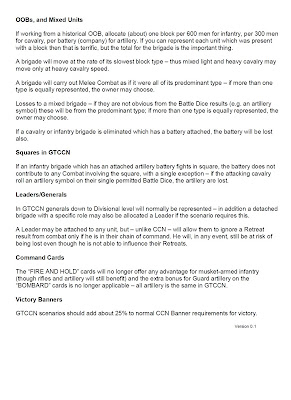 OK - if we gloss over the promotional overtones, the scalability bit is very interesting. A quick read of the example scenario booklet which comes with the game makes it obvious that the scale of the Waterloo scenario is obviously rather larger than Rolica. If this nice, crisp game is really scalable in this way, then this is a most attractive idea. Here was the starting point for my previous consideration of what adjustments would be necessary for a grand tactical [my definition] variant of CCN, which, to save typing, I shall have the conceit to call GTCCN for the time being. Adjustments? - hmmm - if it works in its basic form, the best approach is to leave it alone if possible, not easy for a life-long tinkerer/improver/wrecker.