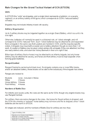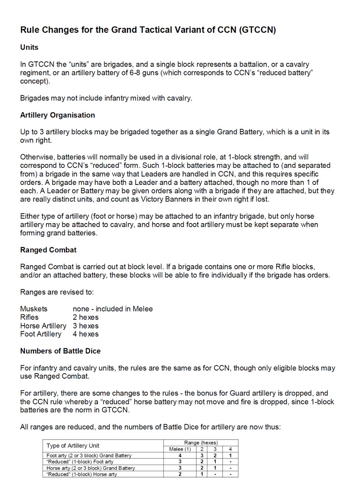 (1) Up to 3 such batteries may be brigaded together as a single Grand Battery, which is a unit in its own right. A 3-block battery of this type is just like the normal CCN battery, apart from some trimming of the ranges (see later).
