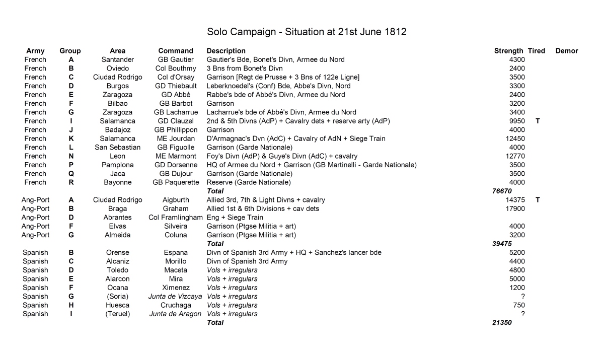 Portugal, plus the cavalry brigades of Col. Picquet and Treillard and 4 foot