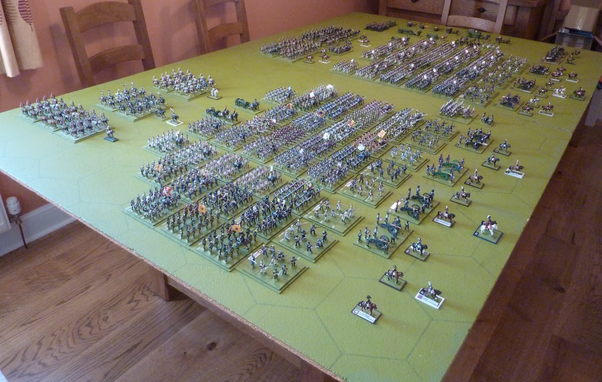 Here’s the whole lot, from 2 directions - you may notice the little "battalion" of skirmish-order tirailleurs at the front of each brigade...