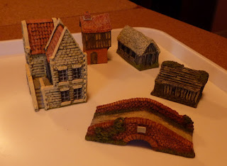 I've also started on painting some 17th Century buildings. There are a lot of these, so I've started with what look like easy ones - I've left the half-timbered stuff until I've got my eye in and my confidence up with the dry-brushing. Good fun so far. These are all Hovels 15mm. I like painting houses, because it's quick and low-stress.
