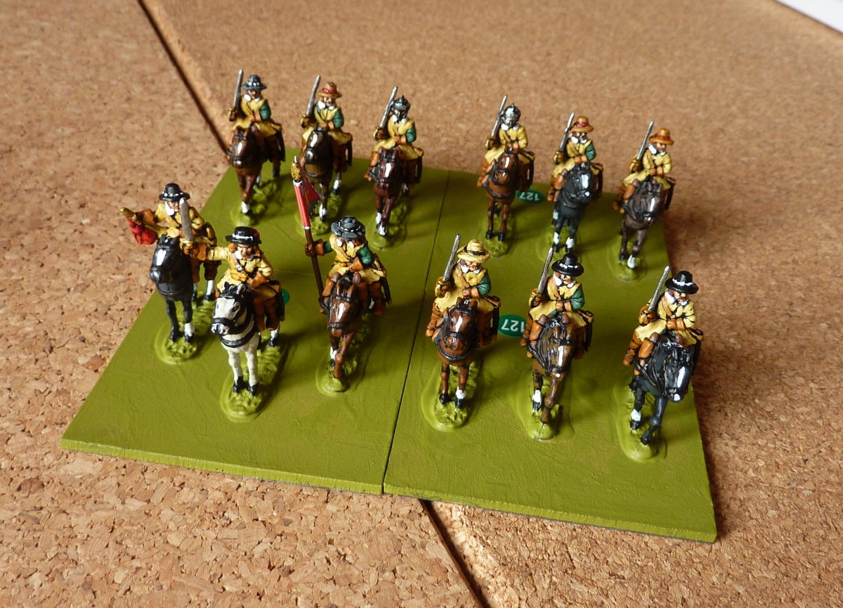 Another two units of horse arrived for my ECW armies - usual lovely job by Lee. Here you see the first of what will be two units for the Earl of Newcastle's Northern Horse [R] - this lot might be Sir Edward Widdrington's regiment - and the more sedate chaps below them are John Lambert's RoH [P].