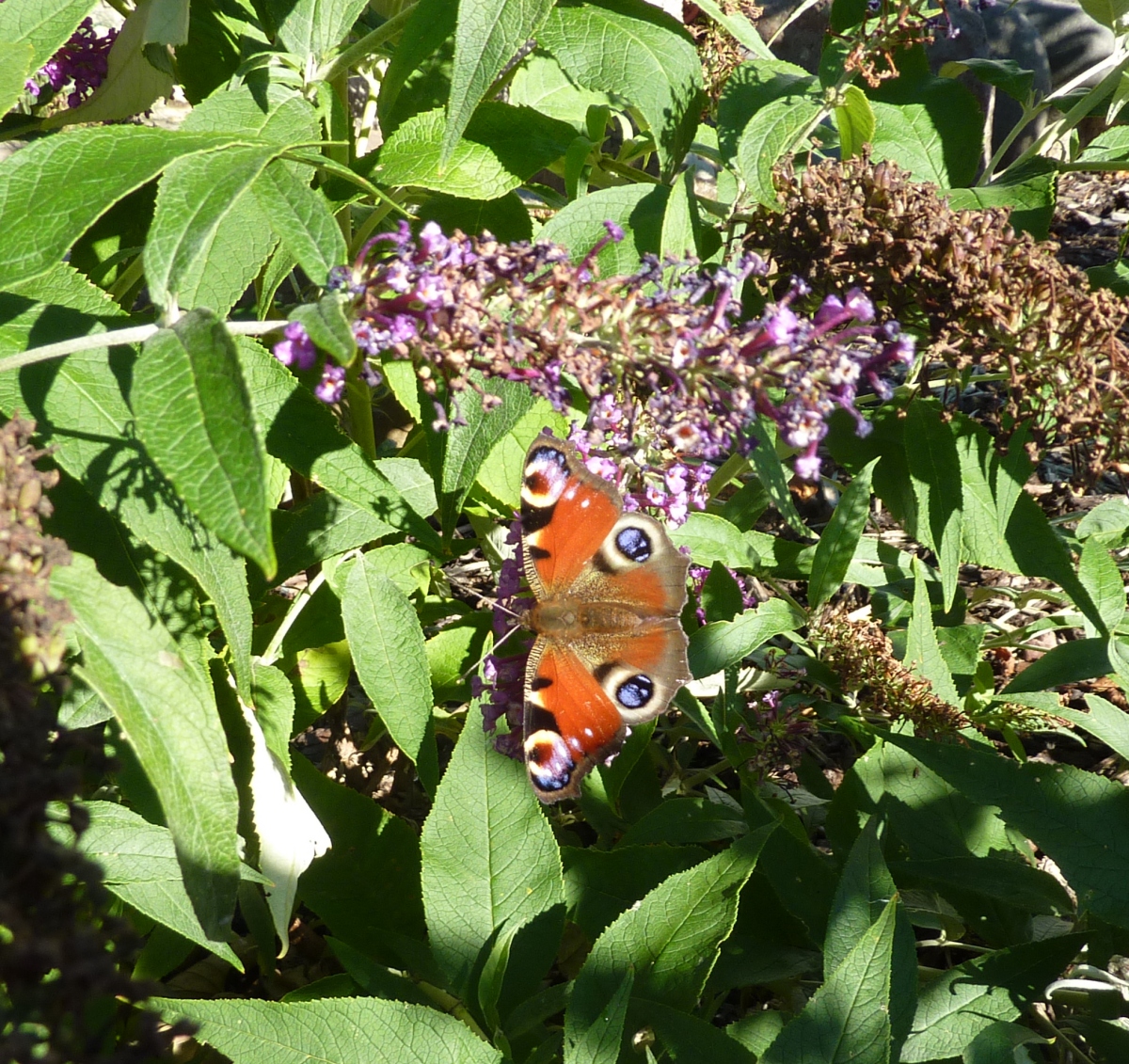 | Buddleia Davidii well past its best, but the Peacock butterflies are still very grateful, thank you |