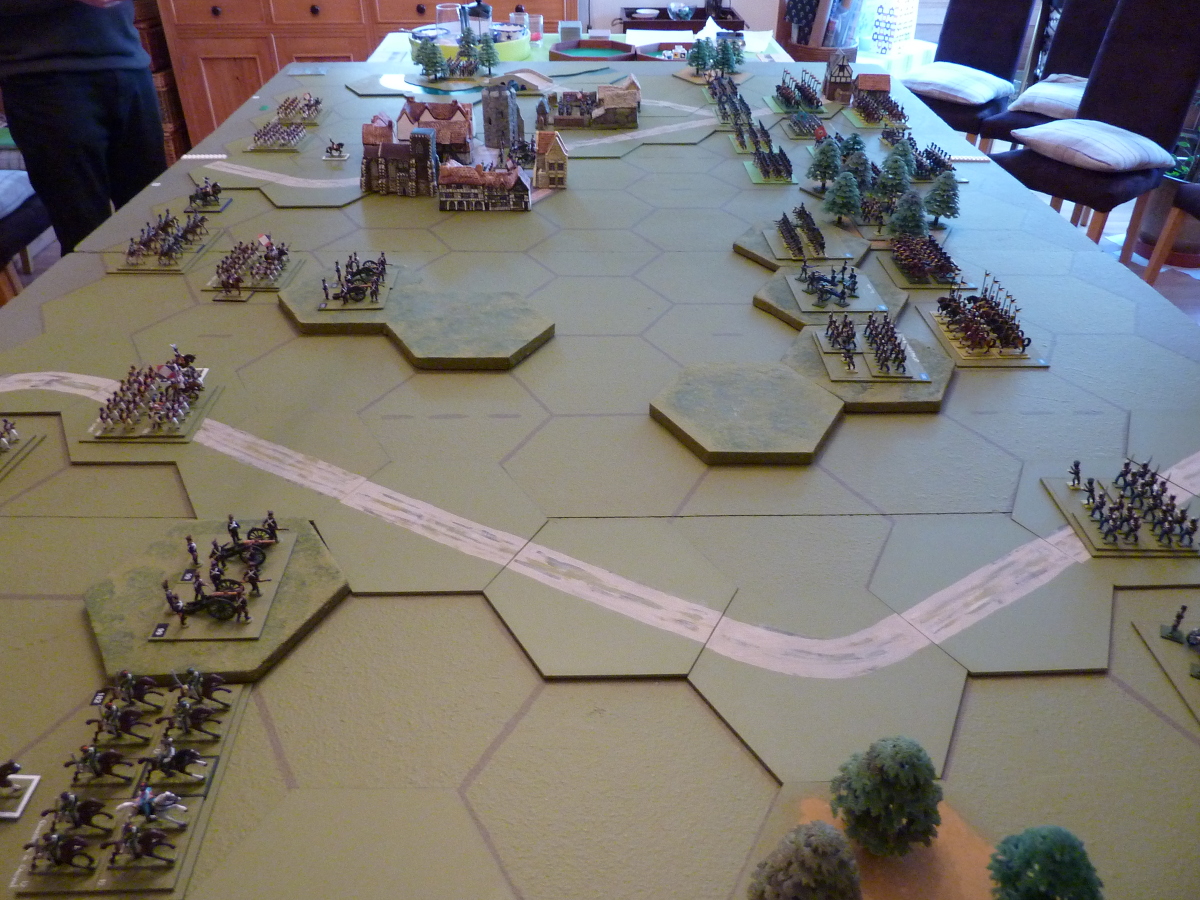 Commands & Colors: Napoleonics Expansion #5 booklet - the only amendments were some substitution of Prussian units to fit with the miniatures we had available, and a house rule tweak to include a couple of roads, and allow a small measure of quicker movement for regiments which used them.