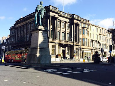 The visit to the optician took about 20 minutes, so we decided to get some lunch in town before we made our way back to The Sticks. We went to the All Bar One which stands on the corner of George Street and Hanover Street - one of several places of this name in the city. I'm always a bit wary of big chains/franchises, but in fact we had a terrific lunch, with very acceptable service in very pleasant surroundings. Never been in there before, but one slightly weird aspect of my visit was that this place used to be my bank, once upon a time.