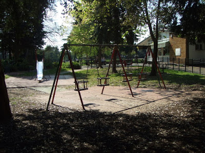 evenings during those forgotten summer holidays from another century. Great. There was now a rather run-down playground encroaching on one end of the traditional football pitch - round about