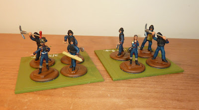 Mostly to give myself a little break from refurbing the 70eme Ligne, I've painted some more soldiers for my French Siege Train. Here are the 1st and 3rd companies of the 2eme Bataillon de Sapeurs, all ready for Ciudad Rodrigo or the Salamanca Forts.