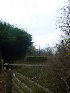 Here's a view of the dark green tree from the aerial shot - not much of it left by Monday - Tommy has sawn up a lot of it to clear the gate