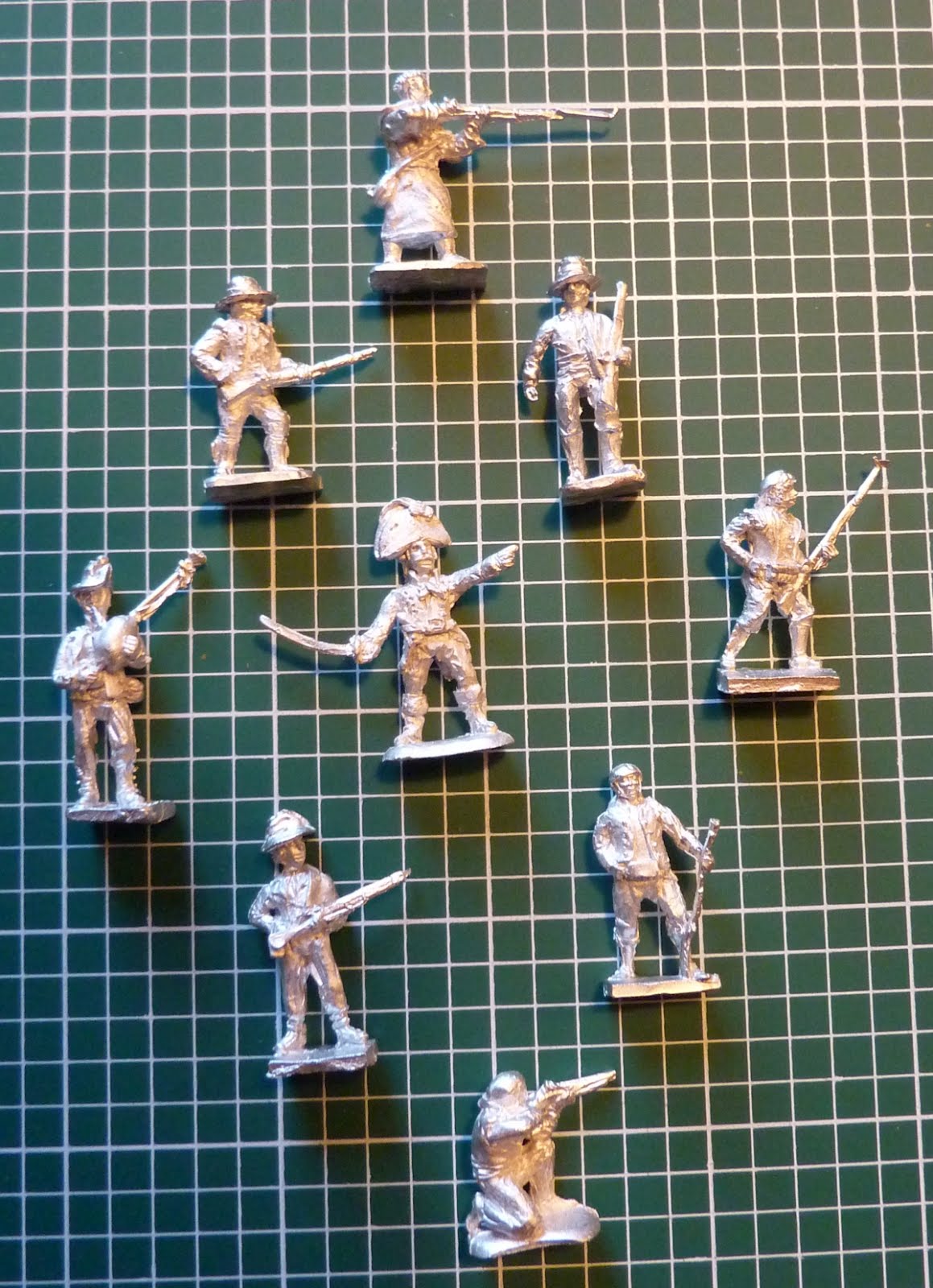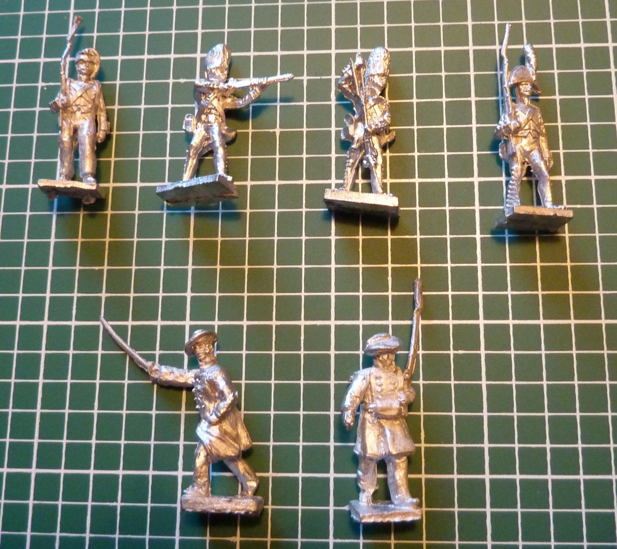 Top, left to right are Spanish infantry in campaign dress, a couple of Grenadiers and a line infrantryman in full dress, while below are the Carlist samples. Figures are nicely sculpted and animated, as you would expect, and stand about 24mm from soles of feet to scalp.
