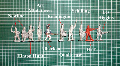 My most recent thinking has been along the lines of using Irregular dragoons - they manufacture 20mm dragoons in stocking caps - at a pinch I could have the officers in tricorns - I understand that both kinds of headgear were issued. The drummer is a scary idea. I've been experimenting with conversion possibilities, none of which were pleasing. After a lot of fiddling about, I sat down to have a really close look at odd figures I have here.
