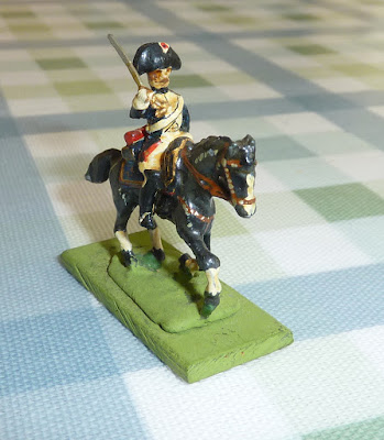Here's a one-off - this is another of these improved OPC mounted figures which I suspect are both cast and enhanced by Mr Gilder - note that this is another of these distinctive, Airfix-style horses. This is very similar to the tweaked Grenadier à Cheval which started this whole study project, but this chap has gold epaulettes and a bicorn, and he has no musket, so I think he's supposed to be an officer for the mounted grenadiers. Because you won't see many of these around, I've done 3 views of him.
