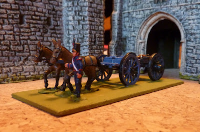 Another new vehicle takes its place in the cupboard. This is a Portuguese howitzer on the march, circa 1811. Mules are by Jacklex, limber is Lamming, the gun is (I think) S-Range Minifigs, and the driver is from Kennington.