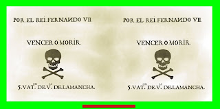 This post follows an email from Ludovico, who wanted to see what I was doing about flags for the Spanish irregulars. The first thing to note about these flags is that they are a complete fabrication - some are derived from a mish-mash of historical examples or depictions, or parts of such - especially of outdated types, some are adapted from reconstructions I found on the Internet, and at least one is just pinched from elsewhere, though whether a guerrilla unit would carry any one of these flags I really don't know. The main motivators were
