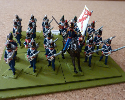 Dragoons. The main issue I have with dragoons is that when mounted they consitute a stand of 3 figures, so it seems most logical to keep that arrangement when they dismount. Thus a unit of 12 (say) organised as 4 stands of 3 mounted figures - one stand being command. The command stand remains mounted to represent horses and holders when the unit dismounts - the other 3 stands are replaced by open order stands of 3 standing figures. Dragoons can move 1/2 distance and mount/dismount, or mount/dismount and move 1/2 distance in a move (and still fire).