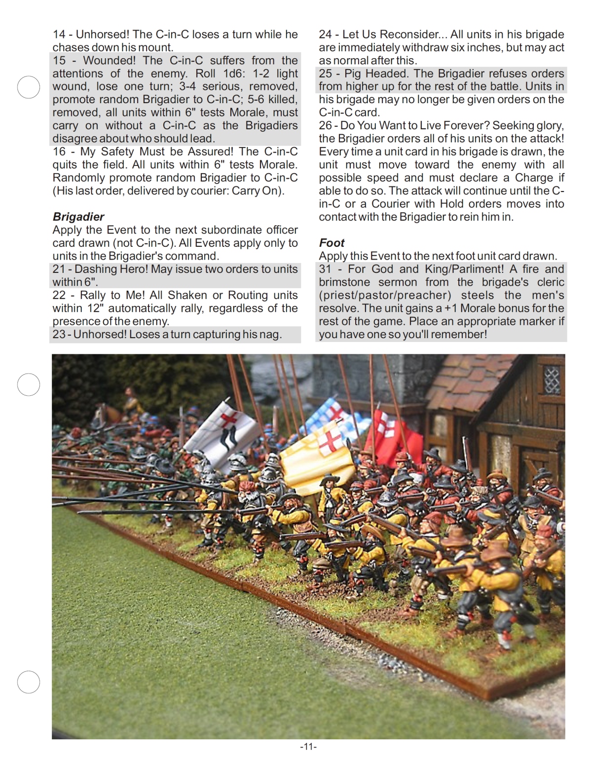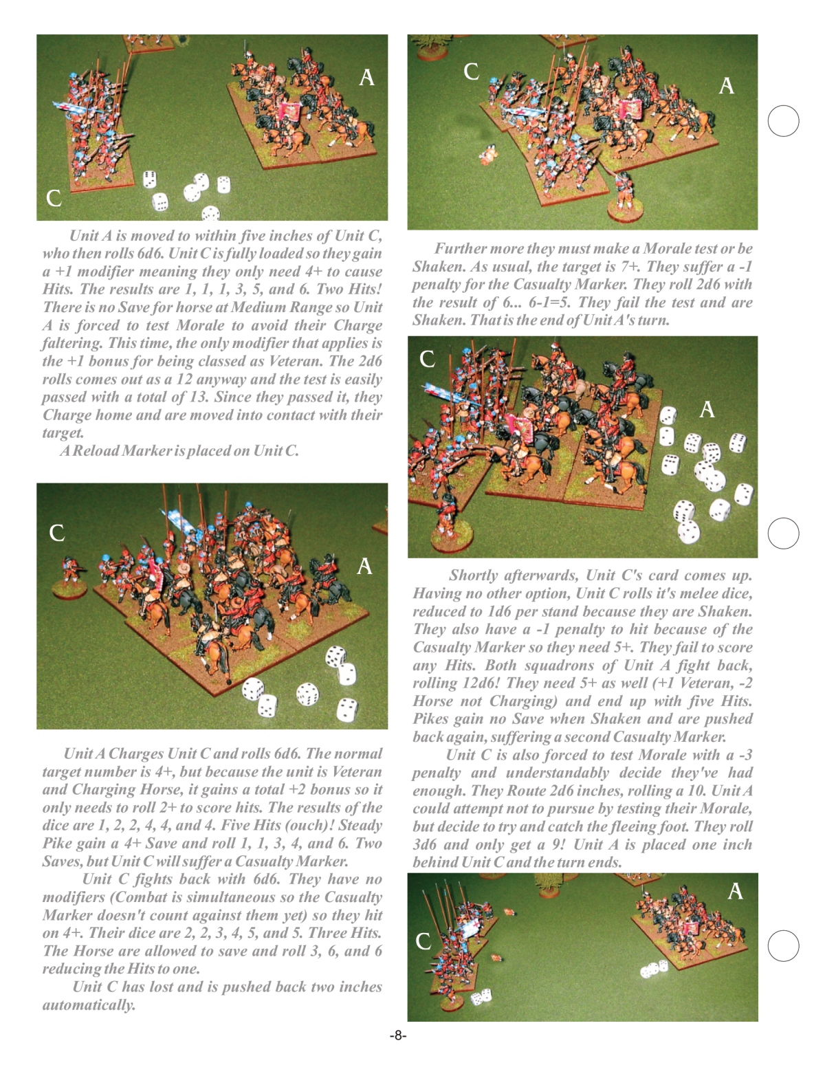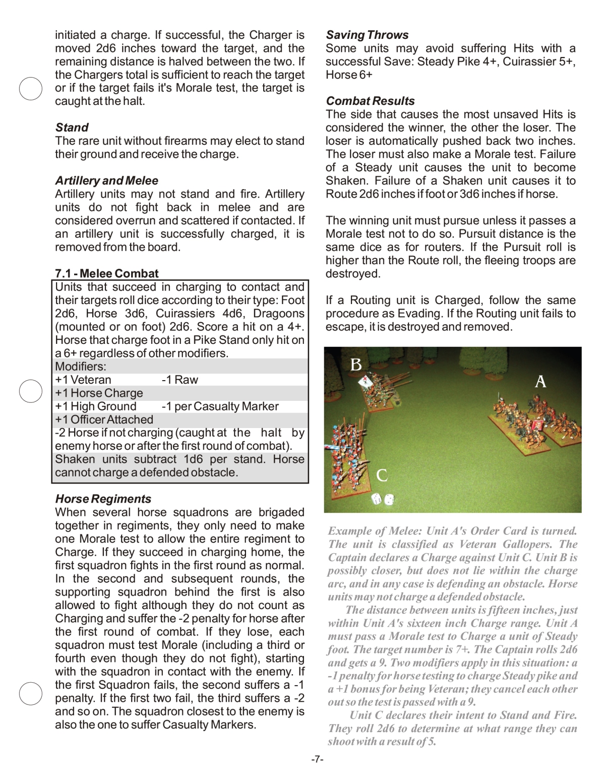 Flank/Rear attacks in melee – Any unit allowed to charge (i.e. not dragoons on foot) may attack a steady unit in flank or rear without testing morale first - adjustments to melee combat dice throw to be +1 attacking flank, +2 attacking rear, -1 attacked in flank, -2 attacked in rear. Morale: -1 for flank, -2 for rear in morale tests for Stand & Fire (against a charge), Countercharge and Form Stand of Pikes, and also for defender who loses melee; attacker who loses a melee in which he was making a flank or rear attack (fools!) gets +1, +2 adjustment respectively in the morale test following the melee.