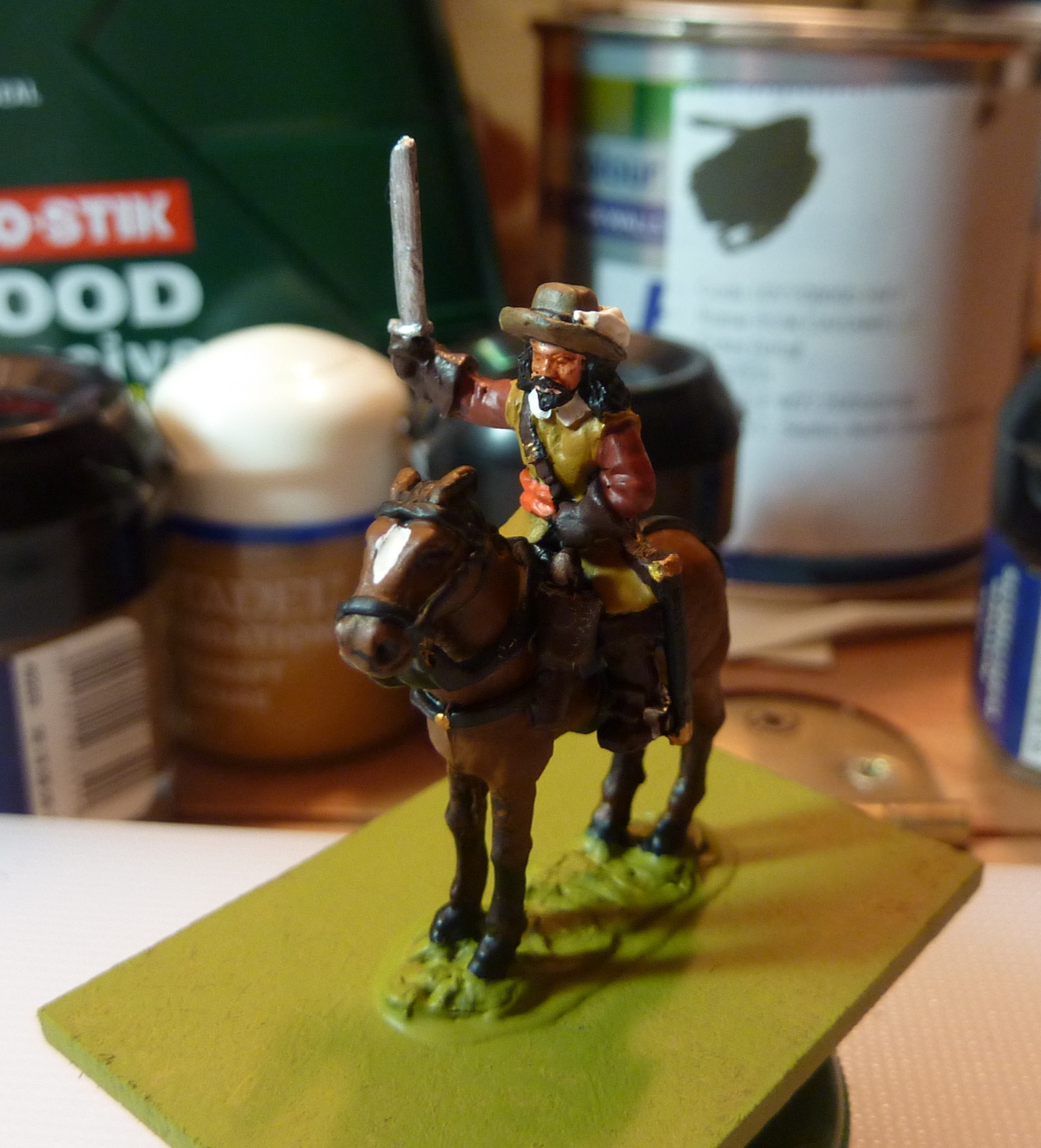 I need to get the painting desk returned to its alternative role of living room bureau, so have been tidying up and putting the pots away. I took the opportunity - since it might be the last for a week or more - to paint another general. Simplest paint job I've done in years, but I really like this little figure, which I was first introduced to by Clive a couple of years ago.