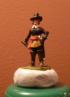I remove the flag, shorten his base, clean up his shoulder and remodel the brim of his hat (the cast flag is integral with the hat), then drill out the bearer's hand and superglue a metal pole in place and the job is done. I've done this enough times now to be getting comfortable and quick with it, and I'm pleased with the results (although it will certainly earn me black marks in the Great Book of Hinton).